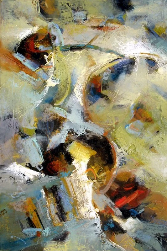 60 x 40 in. — oil & mixed media w/ antique player piano paper
